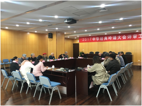赛前,组委会组织召开了2017中华经典吟诵大会评审工作会议,参加本次大会评选工作的评委以及相关工作人员出席会议,评委们纷纷发言,大家就举办本次吟诵大会的举行、吟诵的发展现状、全国总决赛的赛程设置以及评分标准等问题做了交流和商讨。评委们一致表示,此次活动的开展对于吟诵在全国范围内的普及和传播有着重要的意义。
