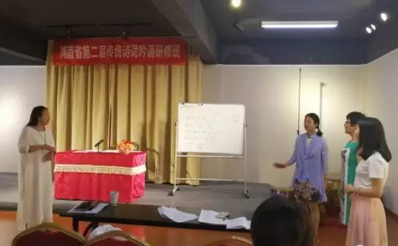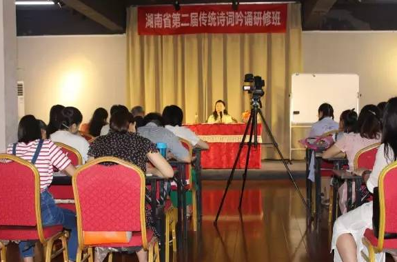 本次研修班由湖南吟诵学会主办。邀请到了中华吟诵学会专家委员会委员、湖南吟诵学会会长、中南大学特聘教授、中南大学吟诵基地首席专家、湖南省吟诵学会会长史鹏,湖南省诗词协会常务理事刘德尧,原株洲市教育局局长雷太来,中华吟诵学会理事、中央民革书画院理事、中国书法家协会会员、湖南省女书法家协会副主席、长沙中山书画院院长、湖南省吟诵学会副会长兼秘书长曹琴,为学员们现场授课。