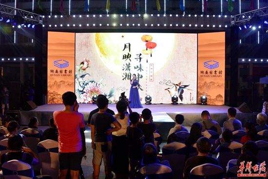 本次活动是由湖南图书馆主办,以“月映潇湘,寻味中秋”为主题,分“千年窑火耀明月”、“月光下的美妆霓裳”、“对月当诵”、“月照三湘”“举家团圆”等多个篇章。(记者 龙腾 通讯员 羊漾 杨庆怀)