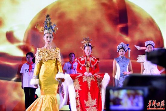“月光下的美妆霓裳”环节,模特展示传统服饰之美。