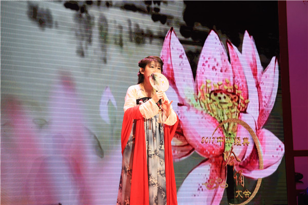 四川绵阳吟诵学会吟诵团,齐声吟唱《念奴娇·赤壁怀古》。