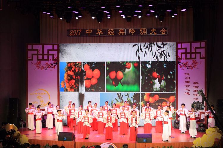 张戈庄小学的28名同学用朱家溍先生的吟诵调吟诵了《橘颂》,孩子们吟诵时饱含深情,情感处理的细腻、精当,很有感染力!吟诵时声情并茂,赢得了在场观众的阵阵掌声!