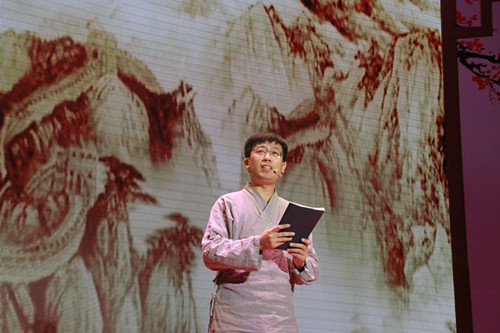 半决赛40进20现场 马兴剑吟诵表演 图/李晓梦 陈孟 来源:中国孔子网