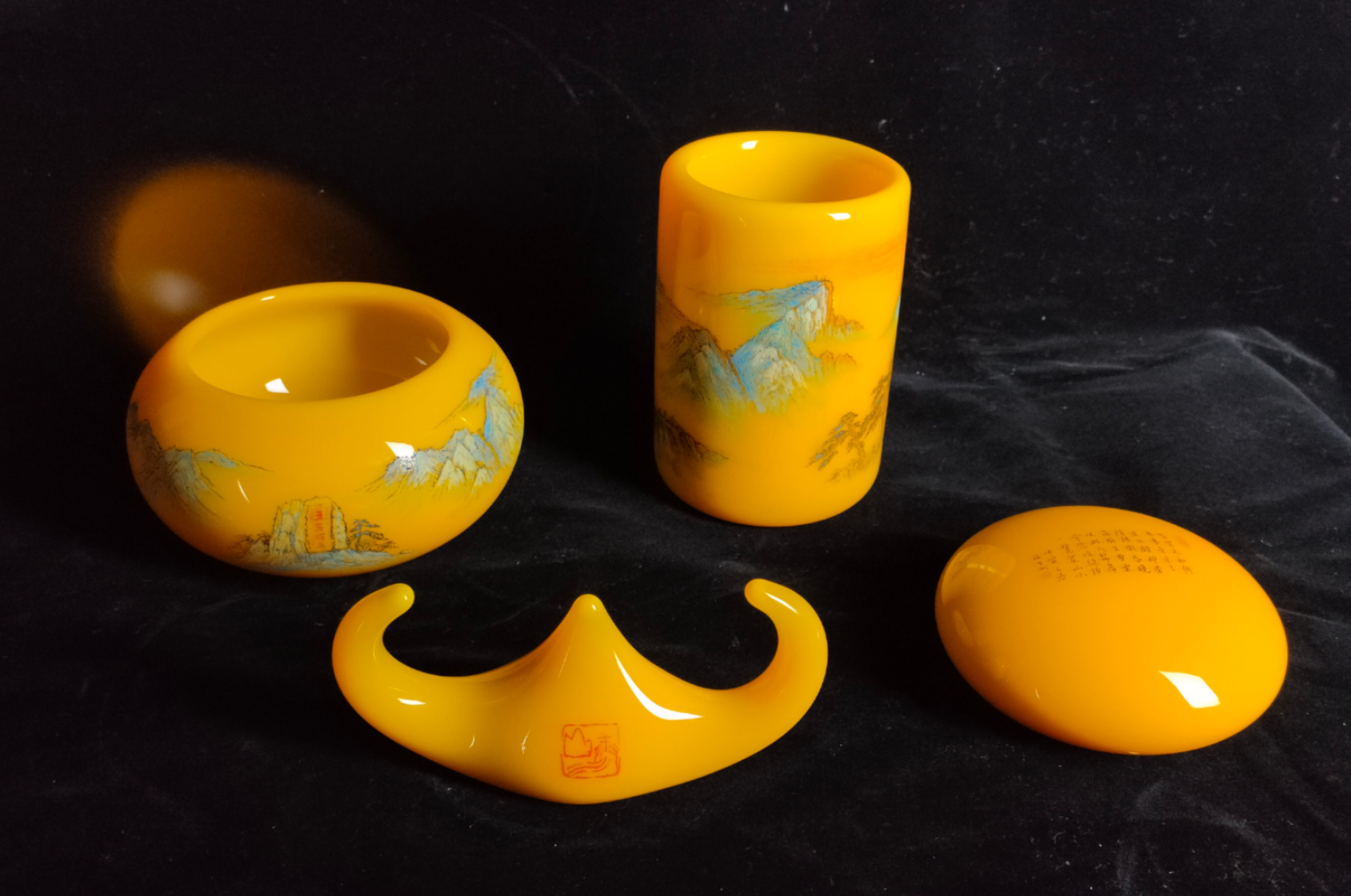 성세황금유(盛世皇金釉) 제노수각(齊魯繡刻) 공예 브랜드의 창시자인 칸싱후이(闞興慧)는 수년간 전통 유리문화의 현대적 표현을 발굴하는 데 힘써 왔으며, 보산 유리에 새로운 특성을 부여하기도 했다.