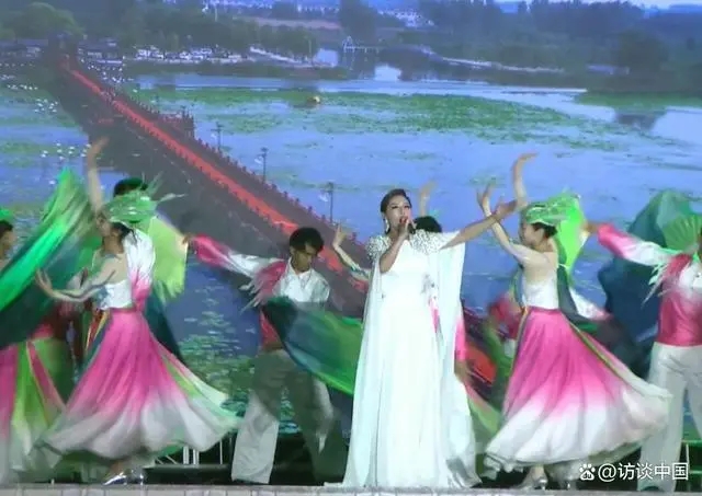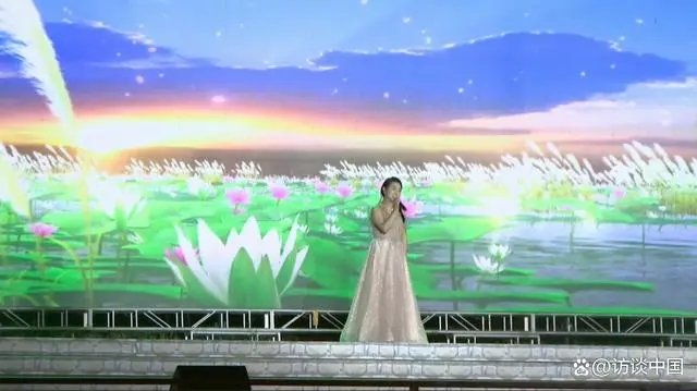 歌手刘青一曲《梦里水乡》带观众走入河湖交融的梦里水乡,共同畅游大美微山。