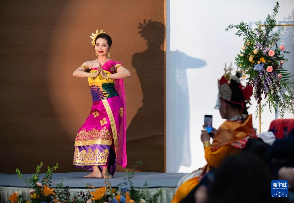 8月15日,一名来自柬埔寨的舞蹈艺术家在第11届中国·南亚东南亚艺术周开幕式上表演舞蹈。
