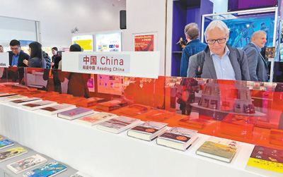 在中国联合展台,《习近平著作选读》第一卷、第二卷,《习近平谈治国理政》第一至四卷多语种版和“足迹”系列图书等被摆放在中心位置,吸引大批读者阅览。