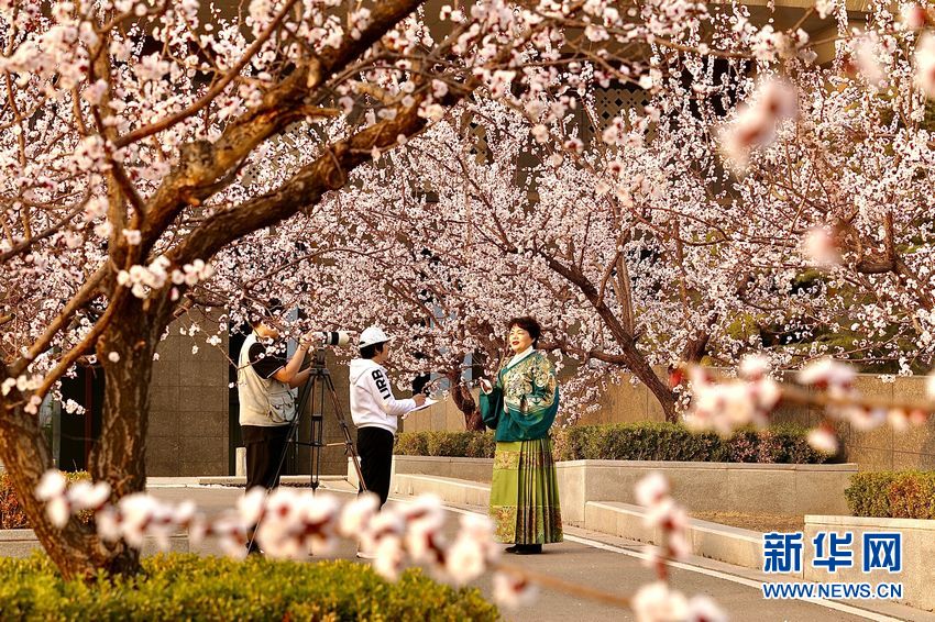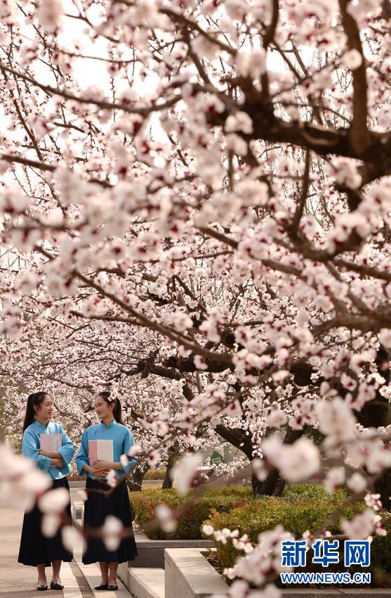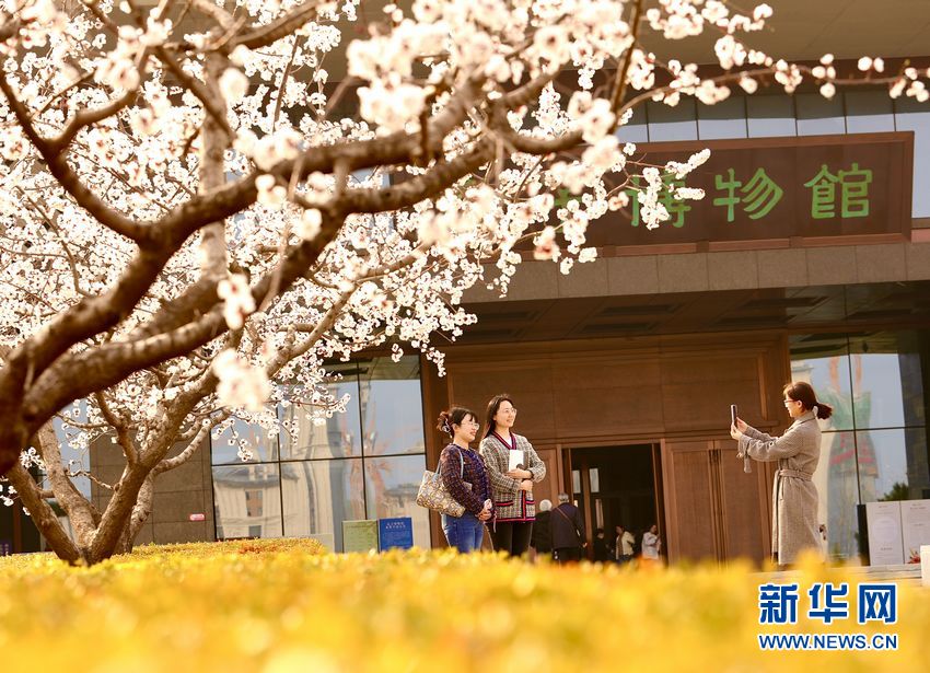 春天的脚步如期而至,位于孔子故里曲阜的国家一级博物馆——孔子博物馆迎来了杏花盛开的季节,盛开的杏花压满树梢,吸引游客前来参观。