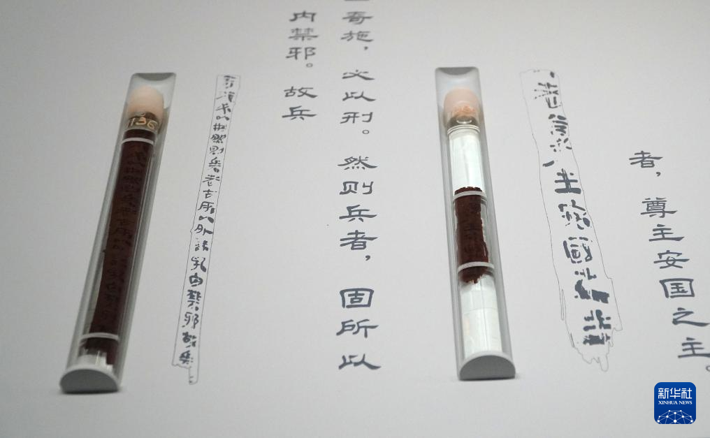 这是在山东博物馆展出的银雀山汉简(4月25日摄)。新华社记者 徐速绘 摄