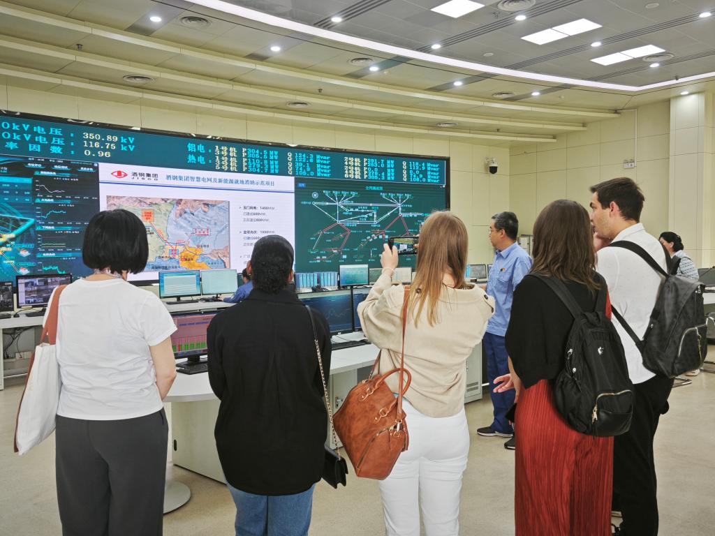 6月1日,第四届文明交流互鉴对话会嘉宾在听取酒钢集团智慧电网及新能源就地消纳示范项目情况介绍。新华社记者 刘杨 摄
