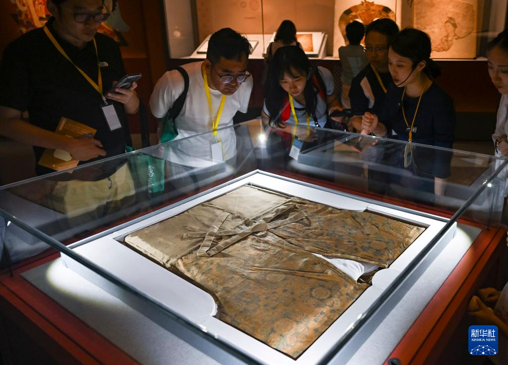 6月17日,在上海奉贤博物馆,媒体人员在展品前驻足观看。新华社发(陈浩明摄)