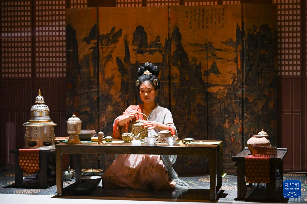 6月17日,在上海奉贤博物馆,演员展示茶道。新华社发(陈浩明摄)