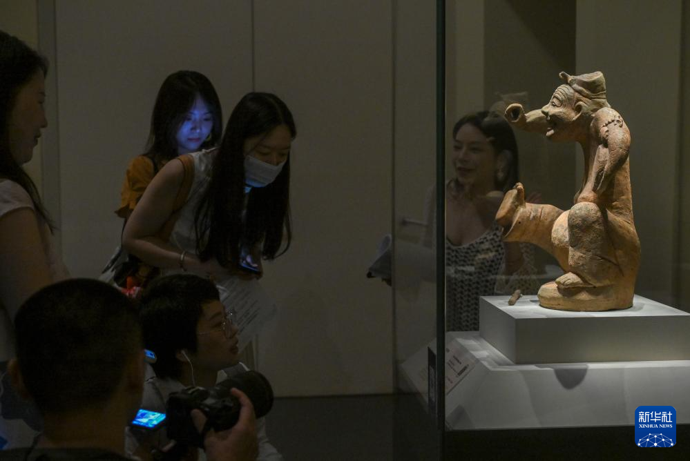 7月21日,人们在国博参观击鼓说唱俑。新华社记者 金良快 摄