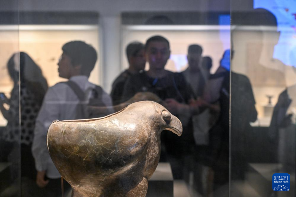 7月21日,人们在国博参观仰韶文化鹰形陶鼎。新华社记者 金良快 摄