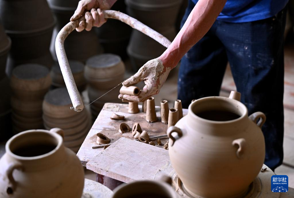 7月18日,在周宁县浦源镇萌源村月山古龙窑制作间,肖家涨在制作传统硋器。新华社记者 姜克红 摄