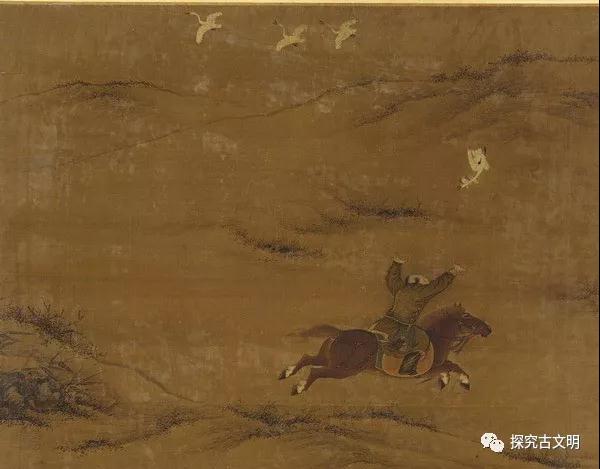 [明]《明宣宗放鹰猎雁图》中的鹰为海东青。
