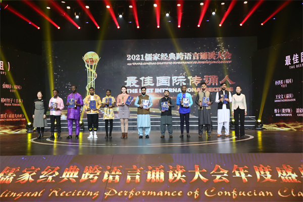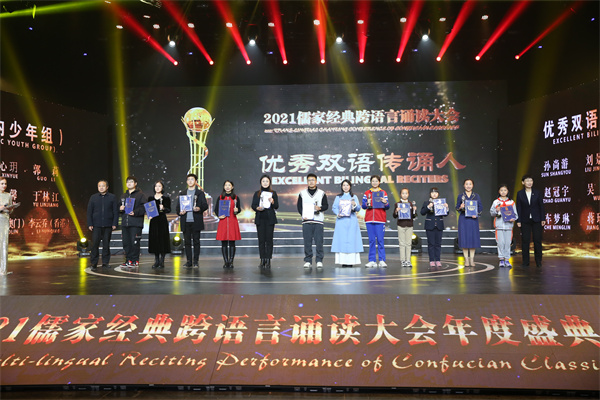 年度盛典分别揭晓了“最佳国际传诵人”“十佳双语传诵人”“优秀双语传诵人”“优秀演绎作品”“优秀指导老师”“优秀组织单位”等荣誉称号。参与盛典的中外学生和汉学爱好者,以“儒家经典”为内容,通过经典诵读、舞台短剧、歌舞表演、中国功夫等形式,展现了中华优秀传统文化的独特魅力。近20家媒体平台对此次盛典进行了全程直播,420余万人次在线观看。