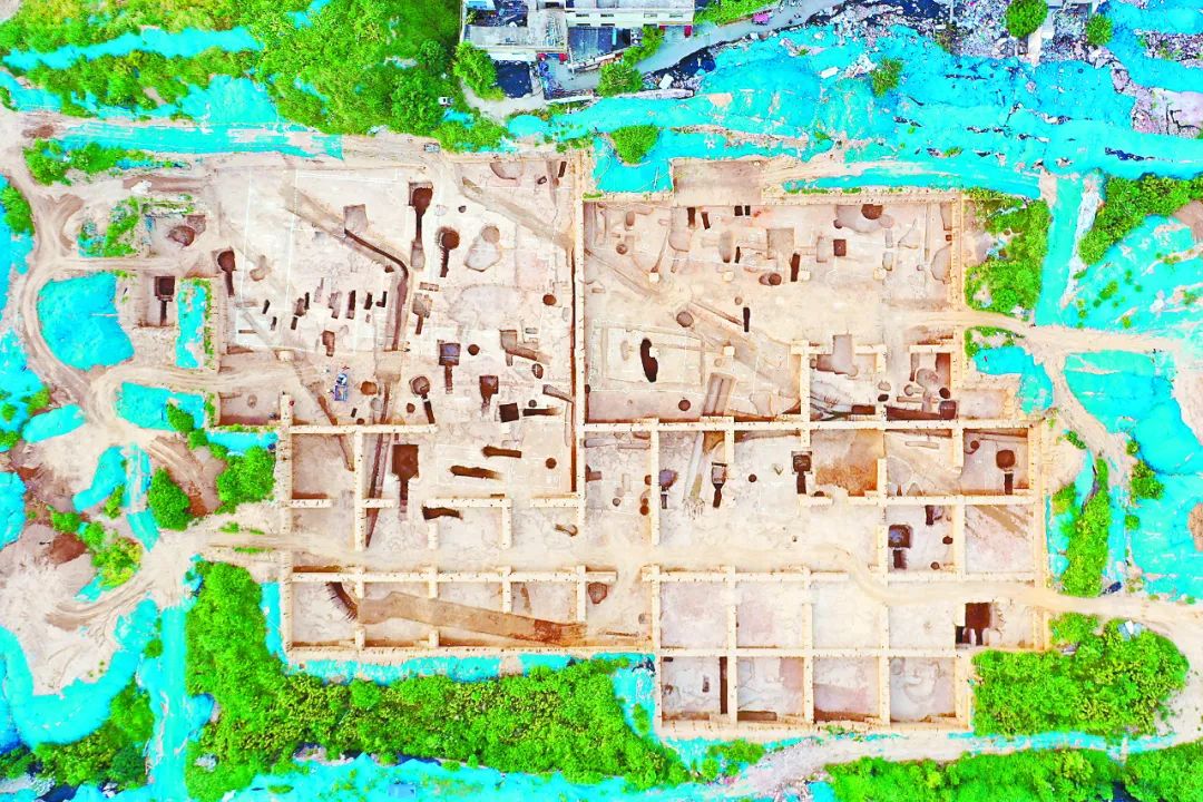 考古人员还在邵家棚商代晚期聚落遗址发现了由18座房址组成的3组多进式院落,以及由1座“中”字型大墓、23座中小型墓葬和4座车马坑组成的墓地,出土刻“册”字铭文的多件青铜器,显示这里可能为晚商时期史官“册”族居住地。