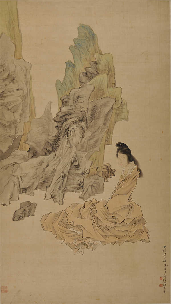 明,陈洪绶,仙侣图,绢本设色,101×48.5厘米(北京市文物局供图)