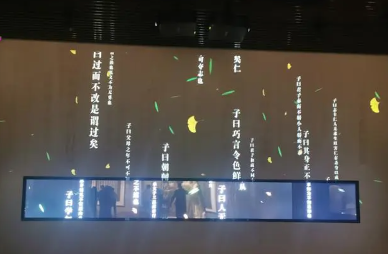 在这里,能体验到更多类似“夫子答问”的数字化项目。比如在《论语》瀑布墙,儒家经典以光影的形式跃然眼前;数字化《孔子圣迹图》上,关于孔子的180个经典故事,通过投影与画卷相结合的方式展现孔子波澜壮阔的一生……