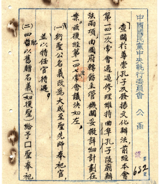 该提议获蒋介石首肯,当即回复:“极赞成,请附弟名提议。”5月31日,蒋介石、汪精卫、戴季陶联名提案,请定先师孔子诞辰日为国定纪念日,并经国民党第123次中常会议决,自此长期饱受争议的祀孔典礼得以恢复。据陈果夫回忆: