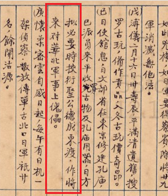 省立扬州中学校长周厚枢同志特来报告日本情形,并谓日本政府正在建筑一座庄严华丽之孔庙,准备完成后迎接孔德成赴日,奉行盛大典礼。我听了之后颇有所感,因为我前两星期去看镇江之孔庙,其大成殿上竟改为织布工厂,虽系民教馆为训练平民织布手艺而设,但总觉太不懂尊重孔子之道。以镇江之大,不能另造一屋,作为工厂之用吗?日本尊孔,当然不怀好意。我当天就去函蒋先生报告此事,并认日本文化侵略之准备,中国不能不加强文化上之国防,更应由政府提倡进行。