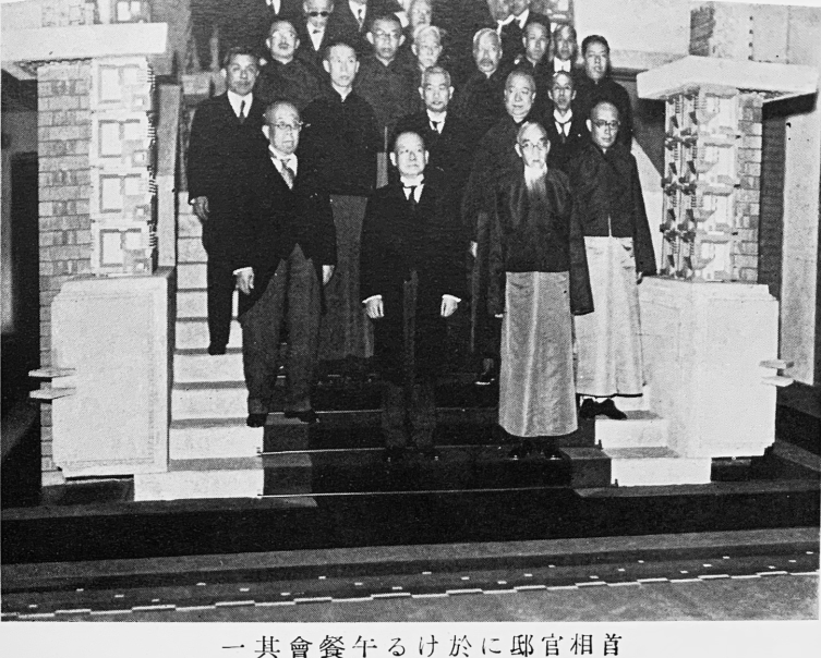 内阁总理大臣冈田启介(前左一)在官邸举办午餐会招待孔昭润(前右一)等一行