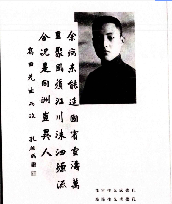 1937年5月孔德成寄高田真治诗:余病未能延国宾,云涛万里聚风萍;江川洙泗源流合,况是同洲岂异人。