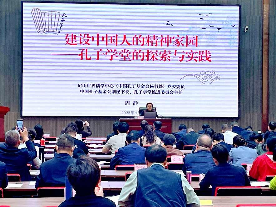 培训期间,周静以《建设中国人的精神家园——孔子学堂的探索与实践》为题进行了讲座。周静表示,此次培训是孔子学堂助推乡村文化振兴发展具有里程碑意义的一次会议。孔子学堂作为传承弘扬中华优秀传统文化的重要平台,在涵养、培育和践行社会主义核心价值观,构建当代中国人的精神家园方面,日益发挥着重要而独特的作用。近年来,寿光市委、市政府高度重视文化传承发展工作,已申办孔子学堂109家,蹚出了一条“家长学校+孔子学堂”的乡村文化振兴新路子,经验做法值得总结推广。近日,由山东省委、省政府印发的《山东省乡村全面振兴规划(2025—2027年)》中,明确要求“推进孔子学堂、尼山书院规范化建设,推动儒家文化进乡村”,进一步为孔子学堂助推乡村文化振兴提供了政策保障,赋予了学堂新的使命与担当。