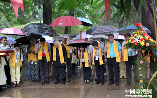 两岸文化界人士雨中祭拜孔子圣人。(中国台湾网 芮益芳 摄)