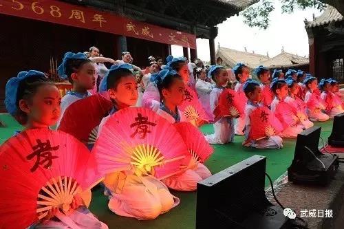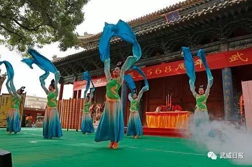 当日的祭孔活动中,最具特色的项目当属“六艺乐舞”。“六艺乐舞”是根据武威传统的“西凉乐舞”的舞蹈风格编排的,表现了孔子所提倡的“礼、乐、射、驭、书、数”六种才能,身着长袖衣衫的女孩子如敦煌壁画中的飞天般在悠扬的乐曲声中翩翩起舞,动若天女下凡,静若清泉流水。