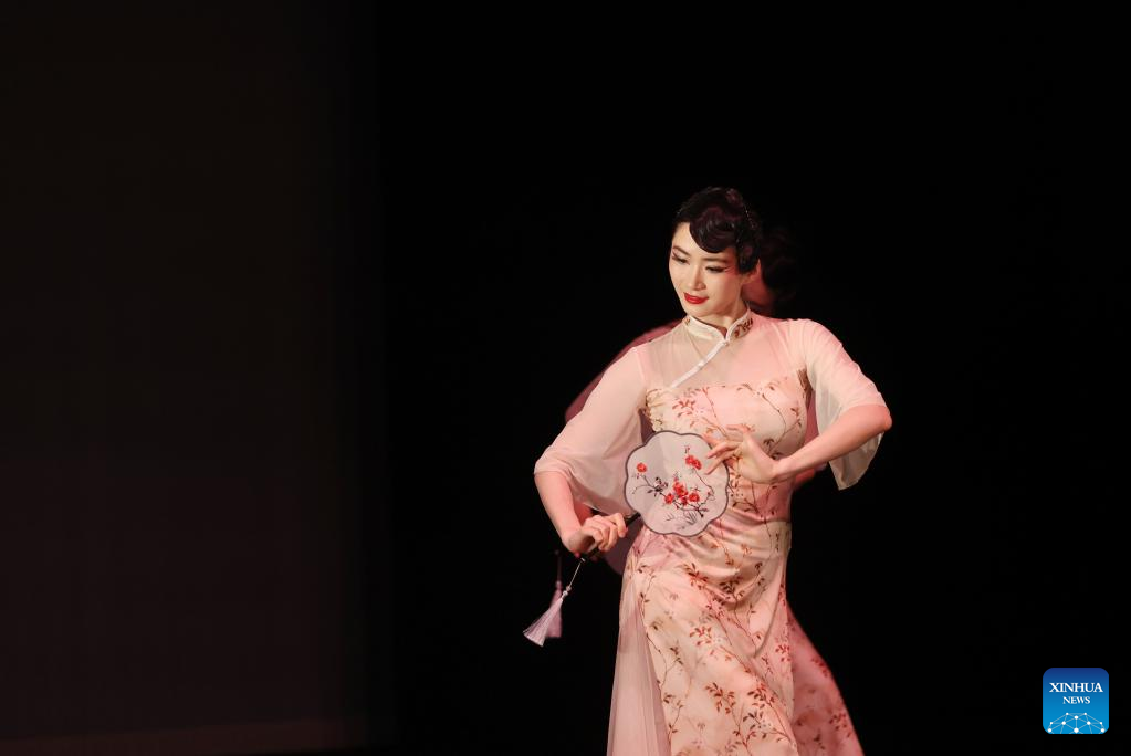 An artist performs during the Silk Road Dance Festival in London, Britain, July 1, 2023. A Chinese dance show was held in east London on Saturday evening, offering the local audience a sensory cultural feast.(Xinhua/Li Ying)