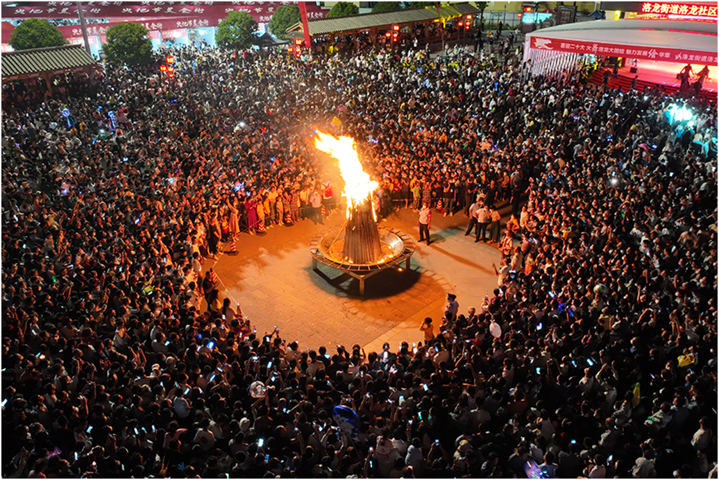 火把節(たいまつ祭)は各民族の子供たちが民族の大団結と文化の大融合を祝う行事である。