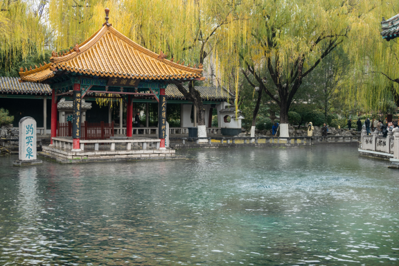 趵突泉は済南の象徴として「天下第一泉」と称され、その独特な自然景観と深い文化的背景は、古くから人々を魅了してきた。元代の書画家の趙孟頫は、詩作『趵突泉』の中で「雲霧潤蒸華不注、波濤声震大明湖」と書き、趵突泉の特有の美景を生き生きと描写している。趵突泉公園内にある濼 源堂には木彫りの楹聯が掲げられており、この千古の名句が刻まれている。これにより、趵突泉の独特な魅力が一層際立っている。