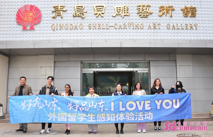 4월28일, 칭다오대학교 국제교육학원이 러시아 한국 태국 인도네시아 적도기니부터 온 7명 외국인 유학생 ‘호객산둥 호품산둥(好客山東 好品山東) I love you’ 외국인 유학생 감지 체험 활동에 따라 조가비 조각 예술관에 들어가서 무형문화재의 매력을 느껴보고 직접 수제의 재미를 체험해 봤다.