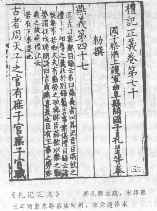 《礼记正义》系唐代官书,《五经正义》之一。唐代孔颖达奉诏主持编撰,朱子奢、李善信、贾公彦、柳士宣、范义、张权、周玄达、赵君赞、王土雄等参与编撰或共同商定,赵弘智复审。成书于贞观十六年(642)。经文取戴圣所传礼49篇,注文采郑玄注。疏文以皇侃义疏为本,以熊安生义疏补所未备,广征博引,词富理实,蔚为大观。《礼记正义·孔疏》承袭儒家重礼传统,并在理论上有所发展,使其更趋系统化。孔疏礼学的主要内容有:①宣扬礼的先验性。继承《礼运》之说,认为礼起于天地未判之前,太一之中即含礼在。“礼者,理也”(《礼记正义·卷首》)。天地既判以后,天居上为尊,地处下为卑,是礼与天地俱兴。“物生则自然而有尊卑,若羊羔跪乳、鸿雁飞有行列,岂由教之者哉?是三才既判,尊卑自然而有”。②建构礼学的系统框架。礼,为理、为体、为履。含于太一为理,统于人心为体,践而行之为履。由理而体,即人心体天地自然之理而为人伦规范之礼,此礼之所以能经天地理人伦之谓。礼有三百三千,虽并立俱陈,统称之为礼,但其中有体履之分,即《周礼》为体,《仪礼》为履。“《周礼》为体者,《周礼》是立治之本,统之心体,以齐正于物,故为礼”。“《仪礼》但明体之所行,践履之事,物虽万体,皆同一履”。仪礼,履之以威仪,又称曲礼,品类繁多,概而言之,则不外吉礼、凶礼、宾礼、军礼、嘉礼五种,囊括了社会生活的各个方面,规范了人们的行为举止。③重视礼的社会作用。礼规定了君臣老幼男女尊卑贵贱之位,并通过一定的威仪加以体现,以抑制浮薄躁动、无所不为的越轨行为,有利于维护封建统治特权,促进封建等级制度的完善和巩固。所以,孔颖达说:“顺之,则宗袥固,社稷宁,君臣序,朝廷正;逆之,则纪纲废,政教烦,阴阳错于上,人神怨于下。故曰:人之所生,礼为大也。非礼,无以事天地之神、辨君臣长幼之位,是礼之时义大矣哉!”