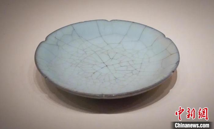 南宋时期的官窑青釉葵瓣口盘。 成都博物馆 供图