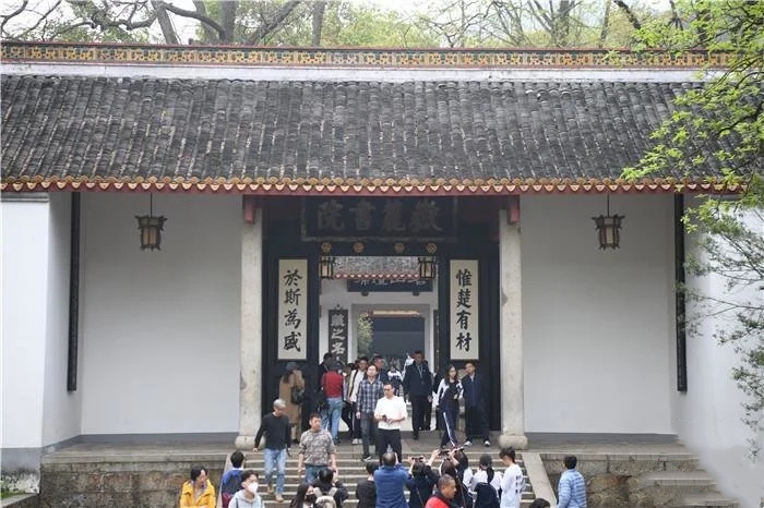 穿行于书院之中,院内书声依旧,同学少年三三两两不时从身边经过。精致的廊台亭榭,在桑槐松竹的映衬下,更显端庄风雅,游人如织。