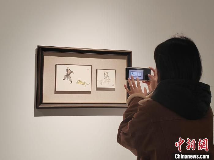 《孙悟空》《鲁智深》《武松打虎》《白蛇传》……展览现场,一幅幅作品以其用笔极简、人物情态天真幽默等特点,吸引观众驻足观赏。“他利用水墨在宣纸上呈现出人物的动作、表情,包括对五官的刻画也很到位。”武月钦介绍。