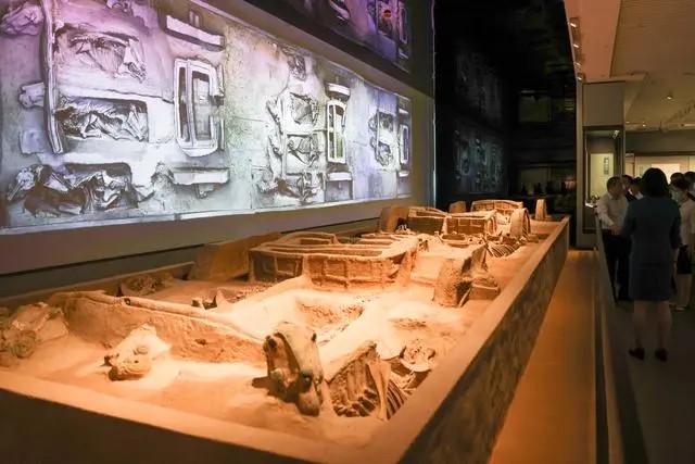 5月16日,观众在参观展出的西周时期车马坑。 新华社记者 朱峥 摄