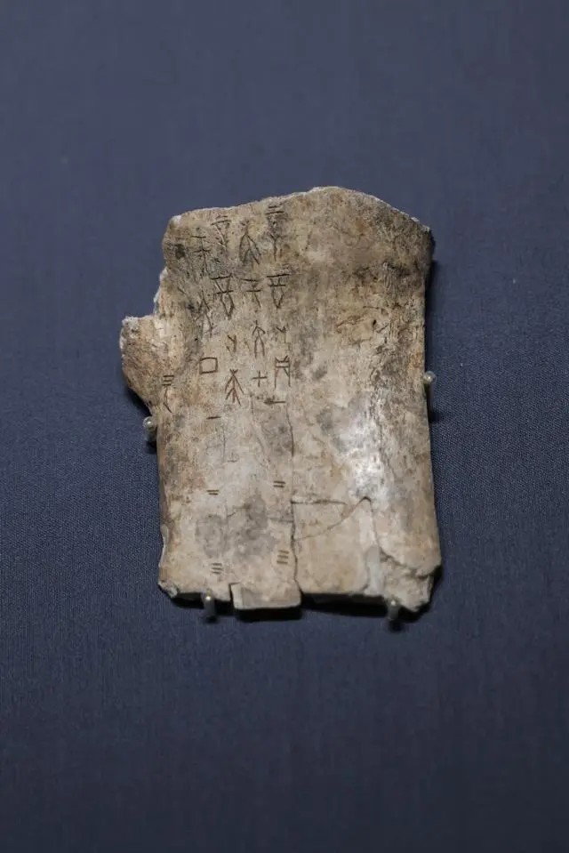 5月16日拍摄的“海岱日新——山东历史文化展”展出的商代干支表刻辞。 新华社记者 朱峥 摄