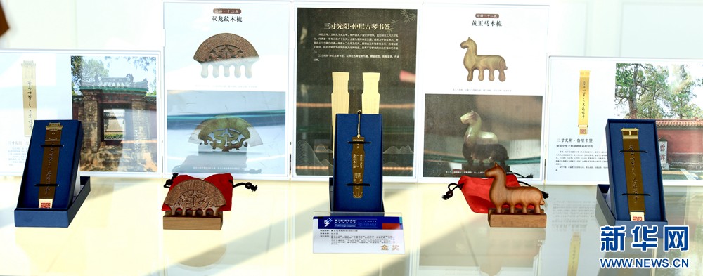 金奖作品黄玉马木梳和双龙纹木梳。新华网发(侯新建 摄)