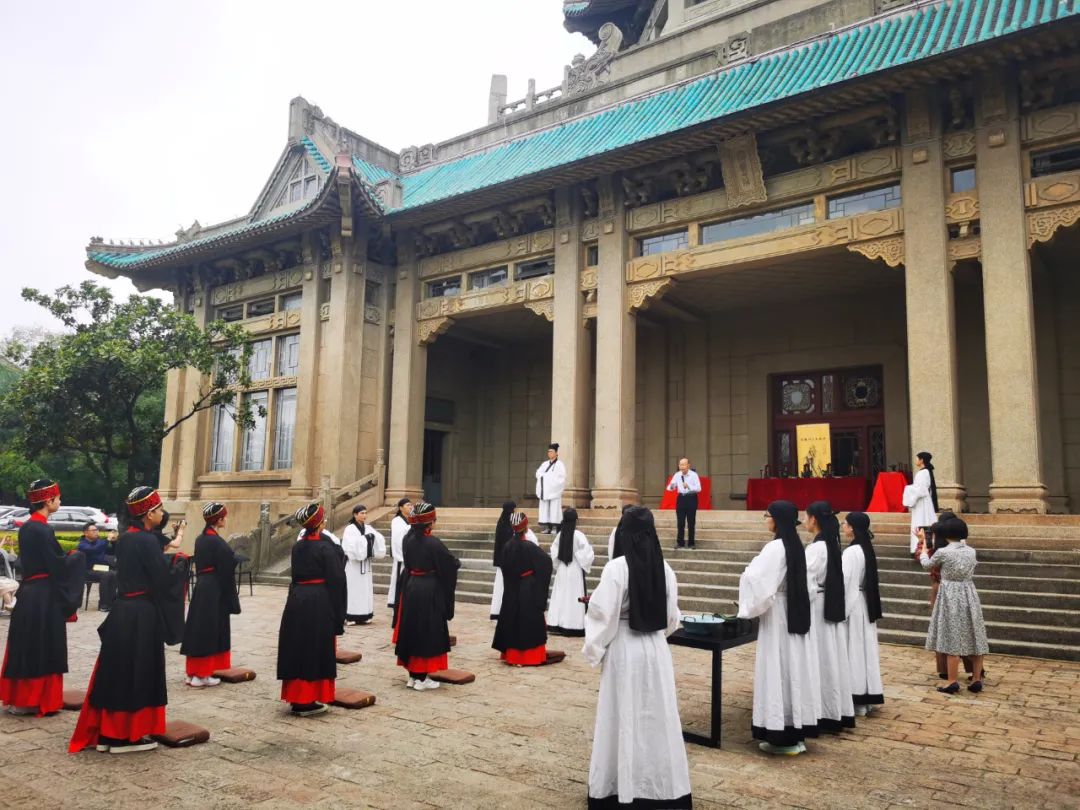 郭齐勇教授(台阶居中)在武汉大学国学院师生祭孔活动上讲话