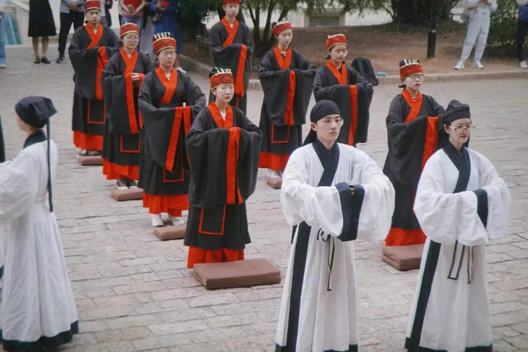 刚才观摩了国学班同学的释菜礼,很受教育。同学们行礼如仪,体验生命的学问,表达内心的宁静与干净。这两天全国各地乃至海外华人社会都在祭孔,我们的祭孔活动规模最小,但有自己的特色,那就是国学课、三礼课的实习与践行。孔诞日在老图书馆(俗称樱顶)祭孔是我们武汉大学国学院师生的保留节目。同学们行礼过程中展现了严肃认真、从容淡定的心态,这是行礼必需的修养。这里表现的是敬畏之心。当代社会人心浮躁,人多傲慢,而礼的训练让人恭敬、谦卑。这不妨碍我们会勇于探索。当代社会是快节奏的社会,而行礼过程是缓慢的、庄敬的。如果要提一点意见,我觉得刚才同学们的步履、动作还略嫌快了一点,行走、操持还应慢一点,提倡比慢。行礼是群体的活动,强调合群性,需众人配合,群性正好对治个体的张扬与人的疏离。