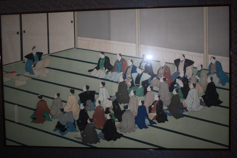 教学方式是,初学者以素读为主,升入高年级后则以“会读”(数人一起读书并讨论)学习班和“轮讲”(集体讨论并讲解某篇文章或学术问题)为主,然后是听儒官的讲释。即素读为入门课程;“会读”与“轮讲”近似近代大学的研讨课(seminar);讲释就是教授的讲义。每月逢4、7、9日有“御座敷讲释”;每月逢1、6日为“稽古所讲释”(大久保2008:89-91)。