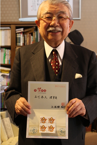 石川先生儒雅大方、极具亲和力。博学多闻、侃侃而谈、学问事理尽在其间。我们交谈愉快,气氛融洽,时间流逝得也特别快,不觉已近正午。告辞前与先生一起在理事长办公室和室外的孔子铜像前合影留念。