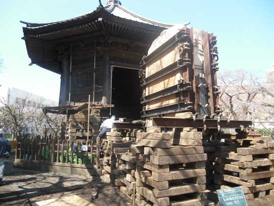 小圷学艺员带领我们参观时,正门屋檐、至圣堂以及正厅等建筑因为正在修复,所以四周被塑料布围着。塑料布上分别挂着用透明塑料纸包着的相关建筑及其说明文的大型照片资料,供参观者以及游客参考欣赏。