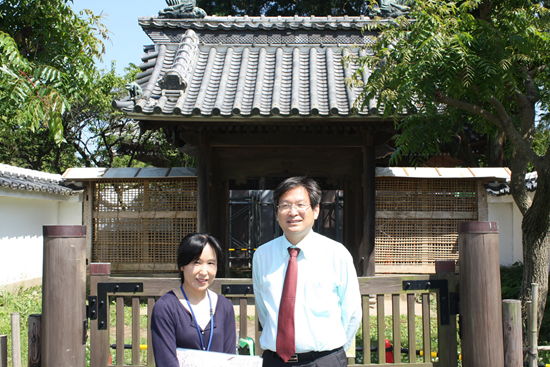 小圷纪子学艺员与笔者在孔子庙入口合影留念