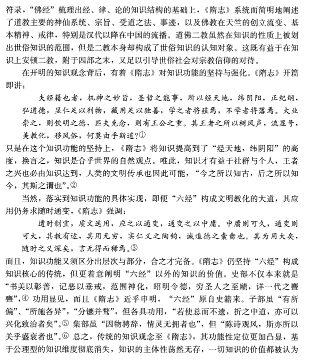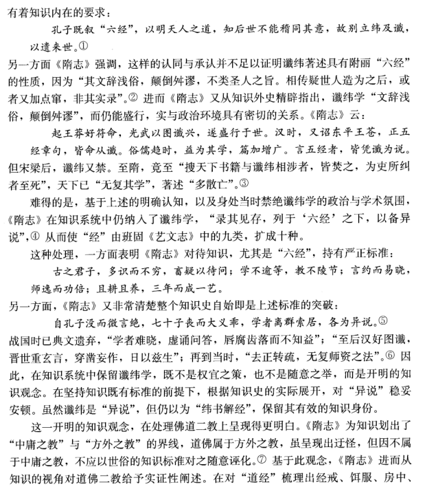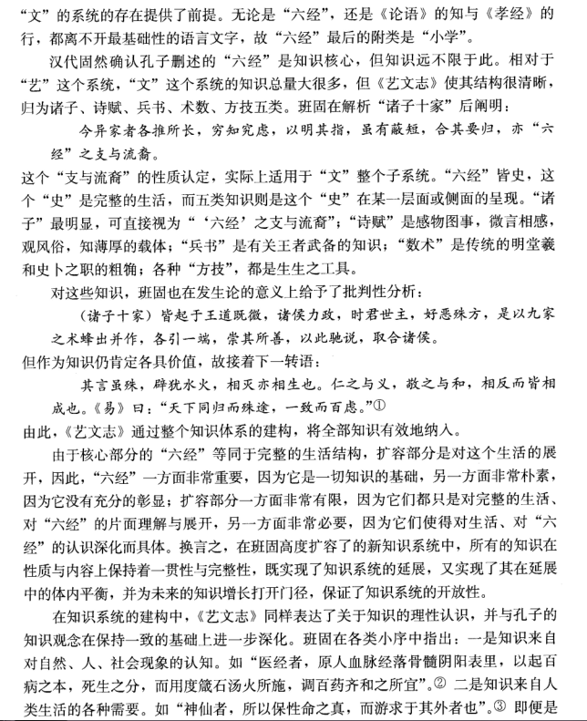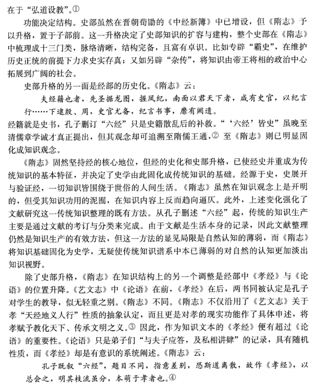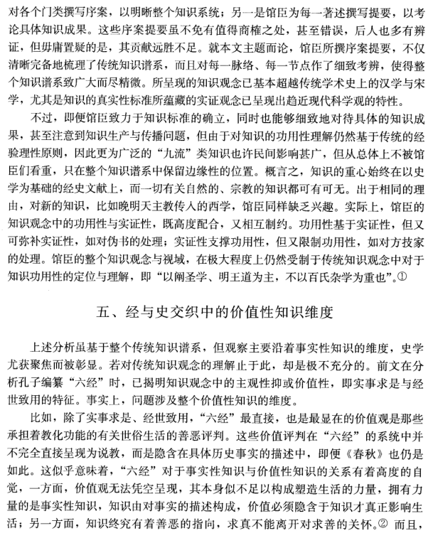 【内容摘要】在中国传统知识谱系的建构中,孔子删述“六经”奠定了最初的知识系统,并形成了以功能为导向的应用型知识模式,其中事实性知识同时蕴涵着价值诉求。从汉到唐,通过有效的建构与调整,既确保了核心知识的稳定,又实现了知识系统的扩容。《艺文志》通过对知识子系统的设定,使知识系统达到了有机平衡,在继承孔子知识观念的同时,增入了知识有限性的内涵。至《隋志》,基于知识性质的分类,安顿了谶纬学与道佛二教,并通过史部升格与化经为史,使历史知识成为传统知识的基础,原本弱化的关于自然世界的认知被进一步边缘化。清代学者沿此方向,确立起真实性与功用性的知识标准,固化了逼仄的知识视域。起于晚清的现代中国学术全盘接受科学以及整个西学,而传统的知识观念实于其中起着导引性的作用。