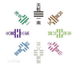 如图.1所示的先天八卦图中,《乾》、《坤》相对(旁通),《艮》、《兑》相对(旁通),《震》、《巽》相对(旁通)、《离》、《坎》相对(旁通)。